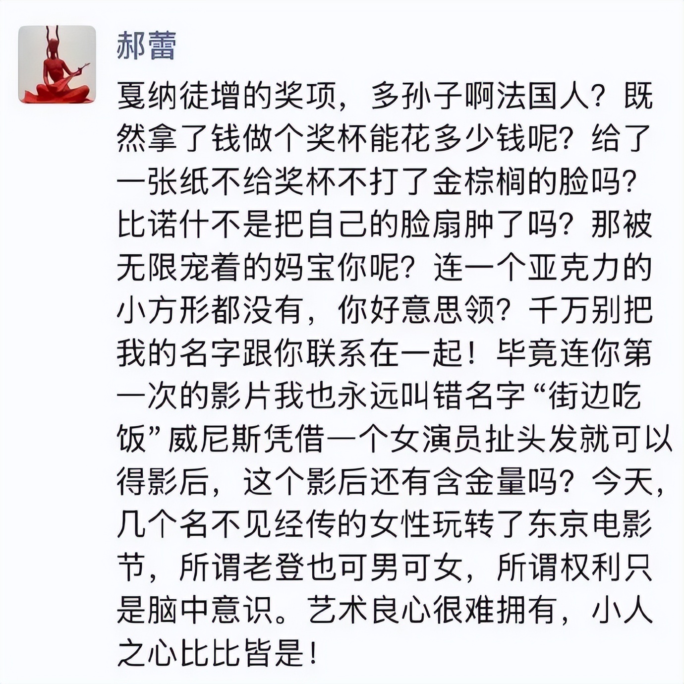 网传郝蕾朋友圈暗讽,称辛芷蕾的影后奖杯拿得不够格。
